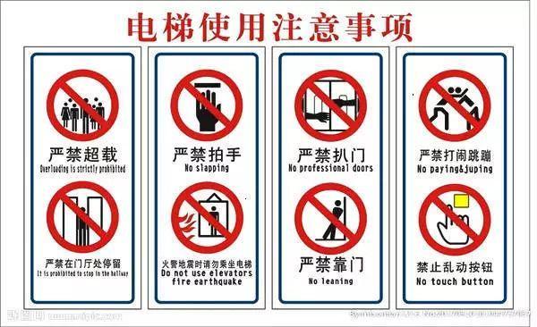 五、乘坐電梯時,注意不要超載,超載時,電梯內(nèi)的警鈴會鳴響,超載乘客應自覺下梯等候;如果此時乘客強行擠入電梯,情況嚴重時可能會導致拽引繩打滑,電梯廂下滑墜落。