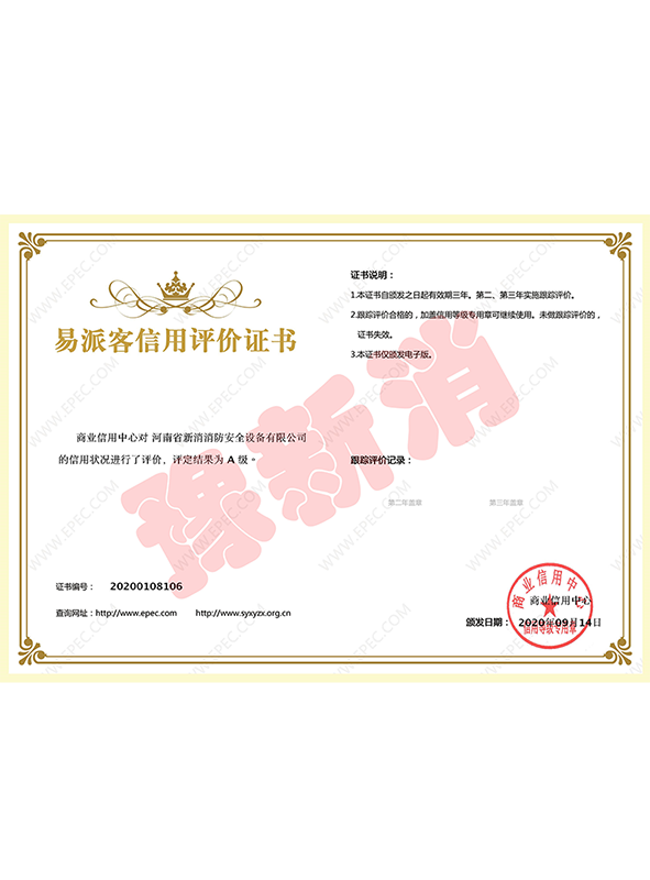 易派客信用評(píng)價(jià)證書